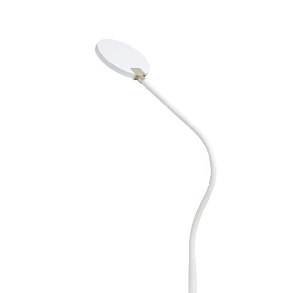 Dimmable floor lamp with a gooseneck and built-in LED covered by a milky diffuser for soft lighting. The switch is located on the body of the lamp.
