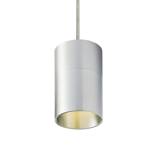 Minimalistic cylindrical pendant for GU10 light sources on a round base. Springs attached to the socket enable the use of light sources of various lengths.