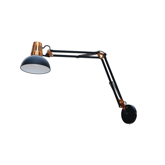 Wall-mounted work light with an adjustable arm and toggle switch at the bottom of the base.