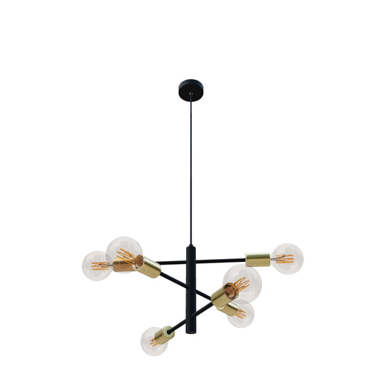 Designer pendant with decorative brass socket covers. The fixture can be shaped by adjusting the arms along the horizontal axis. Suitable for LED light sources with an E27-base.
