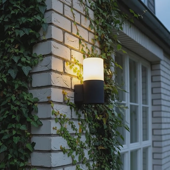 Outdoor wall light with an opal-colored shade and E27 socket for LED light sources.
