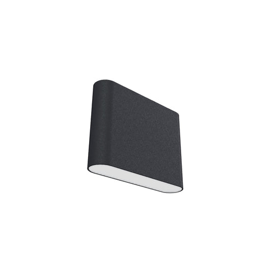 Outdoor wall mounted LED UP/DOWN luminaire made of pressurized aluminum.
