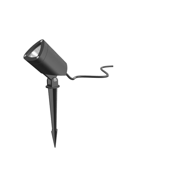 Spotlight on spike with integrated LED for outdoor use. Supplied with a power cord that has no plug.