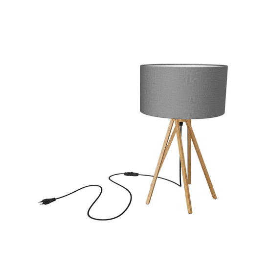 Table lamp of bamboo with a textile shade. This item is delivered unassembled.