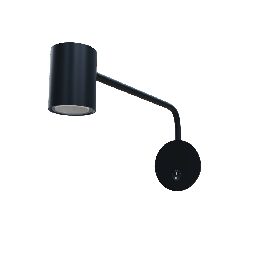 Wall-mounted lamp featuring an adjustable spotlight and a movable arm on the horizontal axis, suitable for GU10 LED light sources.