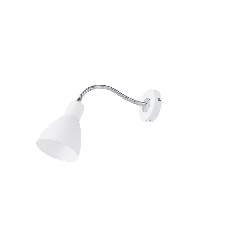 Wall light with a metal shade on gooseneck and a switch located on the base. For E27 light sources.
