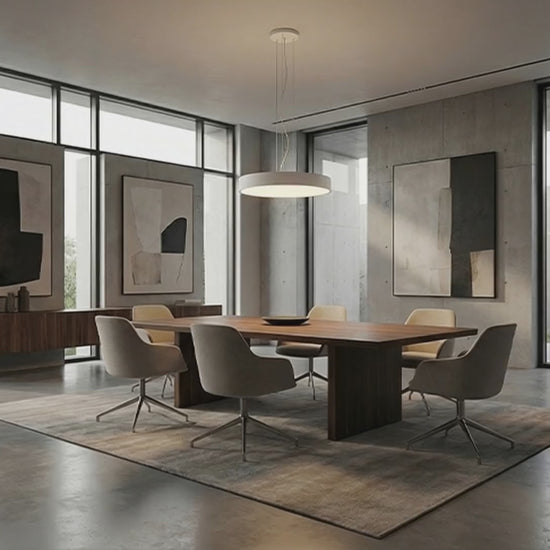 Ceiling lamp with a built in LED light source and lacquered aluminum frame. The fixture is supplied with a frosted polycarbonate light diffuser. When combined with the suspension kit (R13330 or R13331), it can also be installed as a pendant. TRIAC dimming.