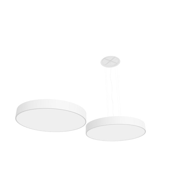Ceiling lamp with a built in LED light source and lacquered aluminum frame. The fixture is supplied with a frosted polycarbonate light diffuser. When combined with the suspension kit (R13330 or R13331), it can also be installed as a pendant. TRIAC dimming.