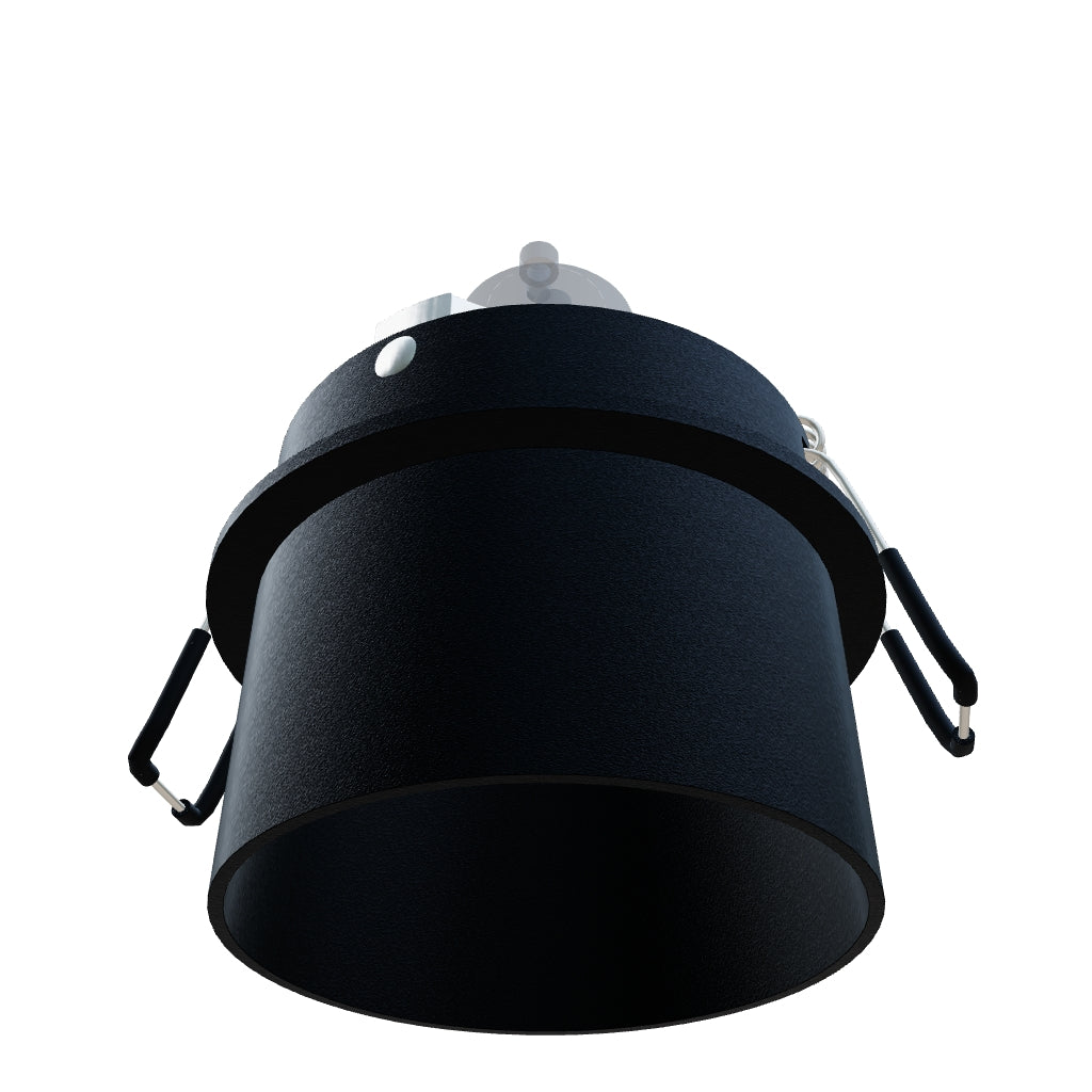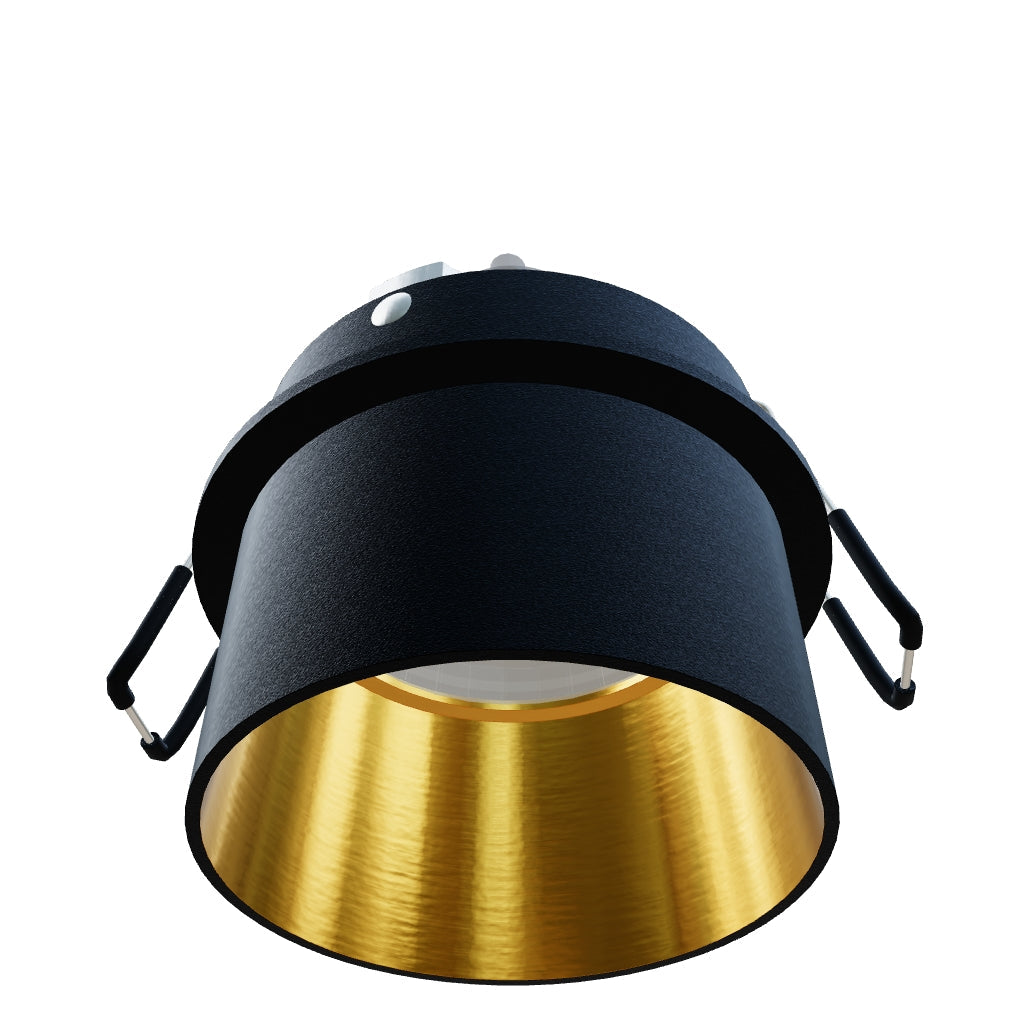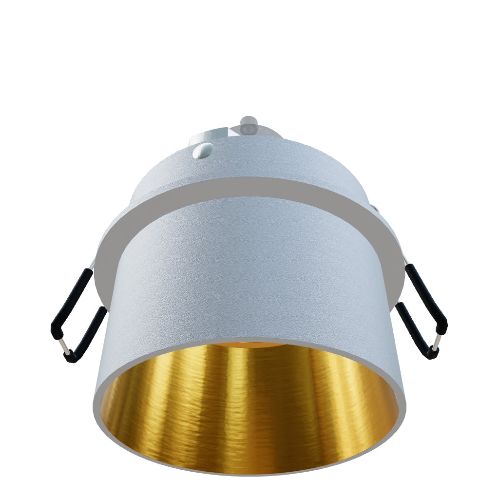 Partially recessed aluminum light in various color versions, designed for use in drywall with LED light sources that have a GU10 socket.