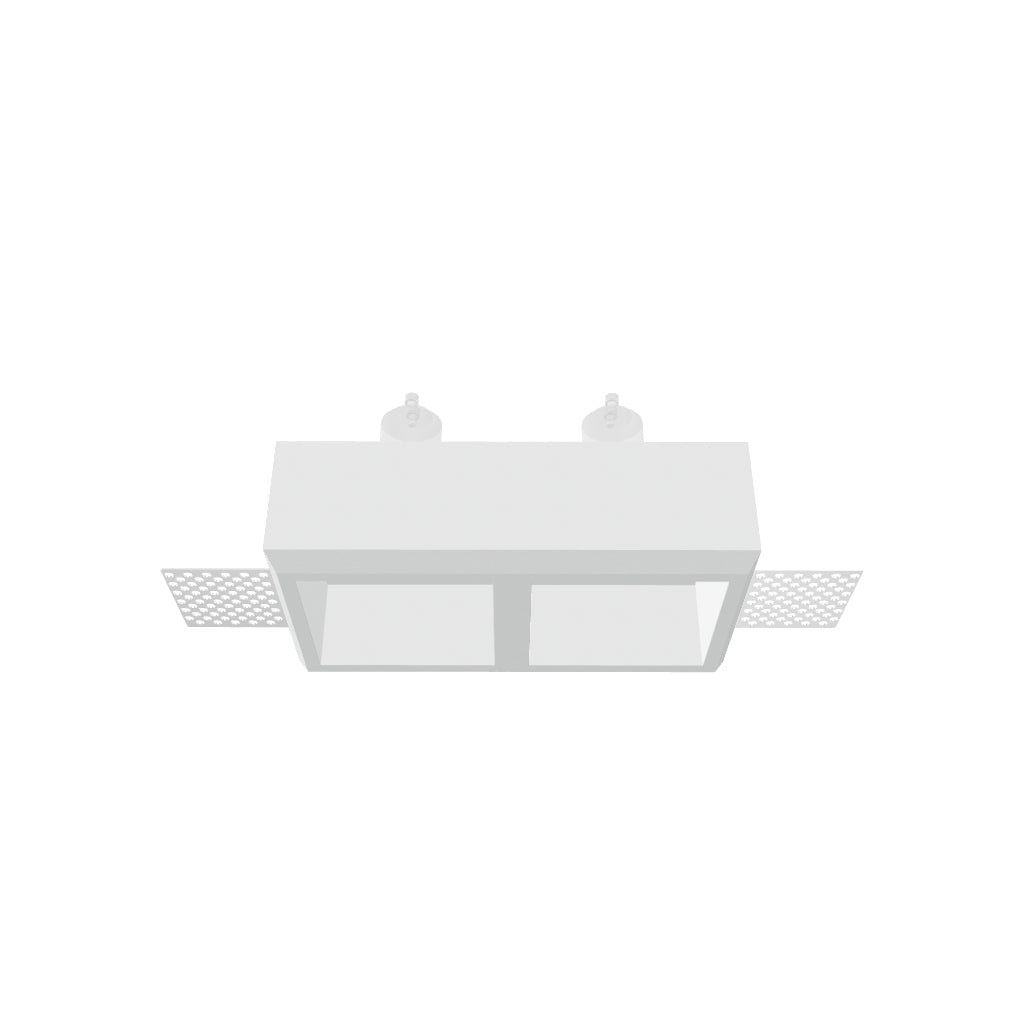 Plaster downlight with two square holes and no frame. The surface can be colored with interior paint. Only for drywall installation.