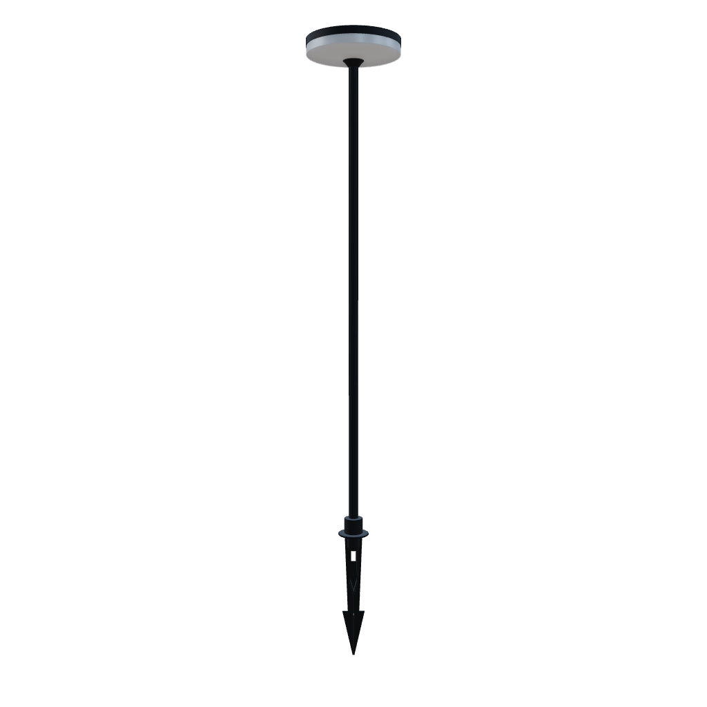 LED light on a spike for gardens, featuring downward and side illumination. Includes a one-meter power cord without a plug.