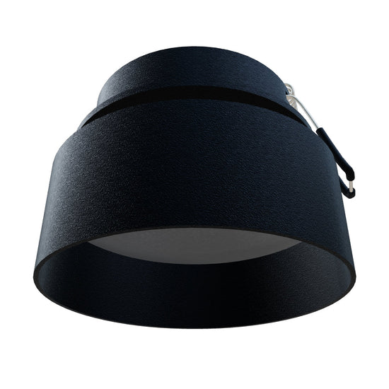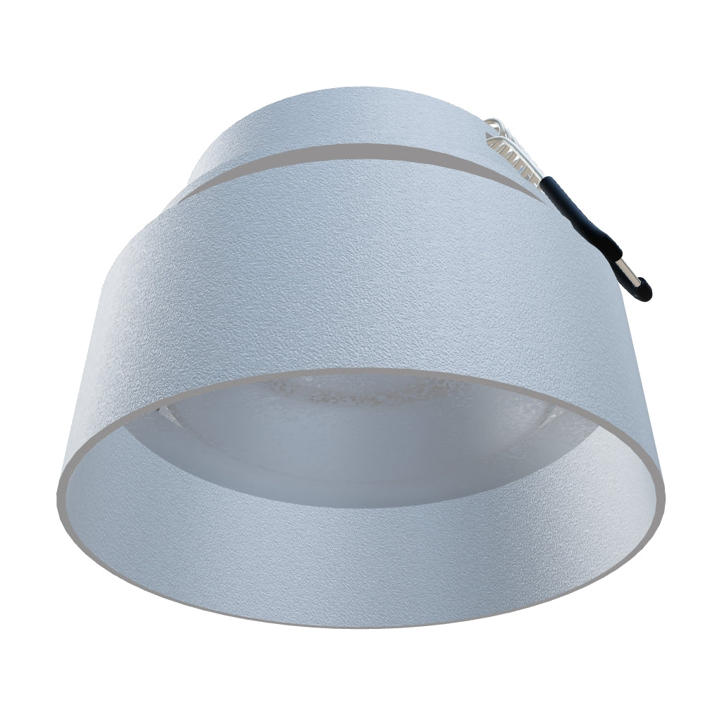 Partially recessed aluminum light with an offset for indirect lighting, suitable for use with drywall and designed for LED light sources that have a GU10 socket.
